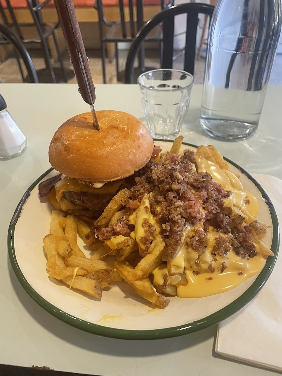 Good place if you are realy hungry, because they have some heavy burgers that can be matched with "loaded" fries (with bacon and cheddar) or salad. The staff is nice and although they serve you at the table, you'll have to pay at the counter. With its priviledged central position, it's pretty crowded in the evening and getting a table outside might become a challenge.