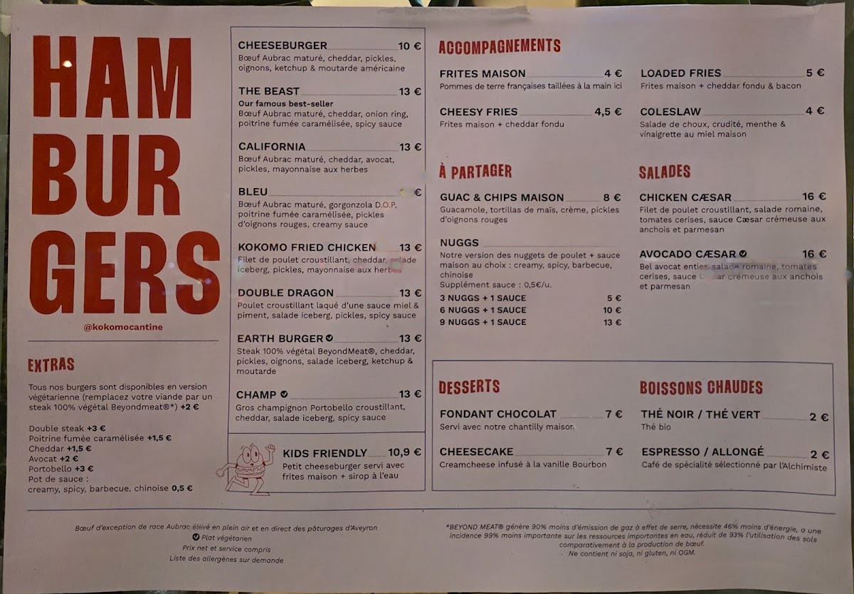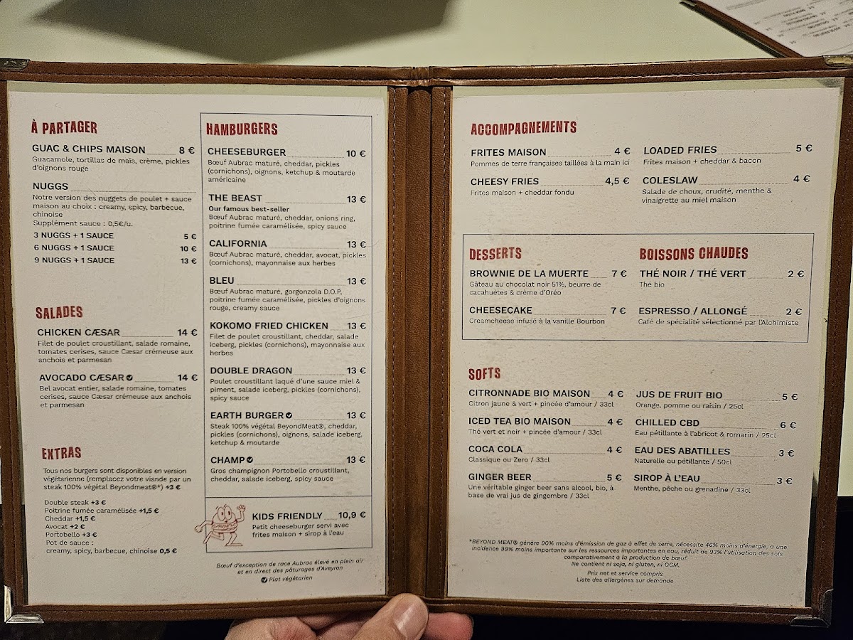 Introducing Kokomo, an exciting burger restaurant nestled in the heart of Bordeaux. Known for its vibrant atmosphere and mouthwatering offerings, Kokomo takes the classic hamburger to new heights. Each burger features quality Bœuf Aubrac meat, with standout options like the famous The Beast, boasting a harmonious blend of smoky bacon and spicy sauce. Vegetarians will also delight in the Earth Burger, which delivers flavorful satisfaction. The sides, from crisp homemade fries to cheesy indulgence, perfectly complement the main dishes.